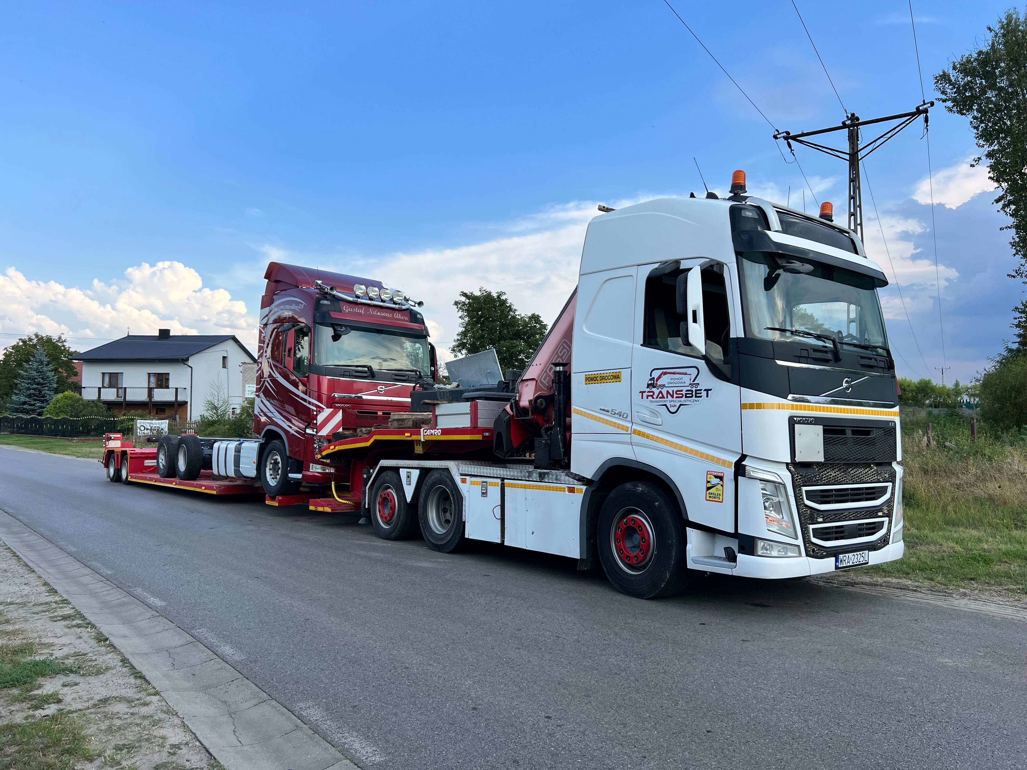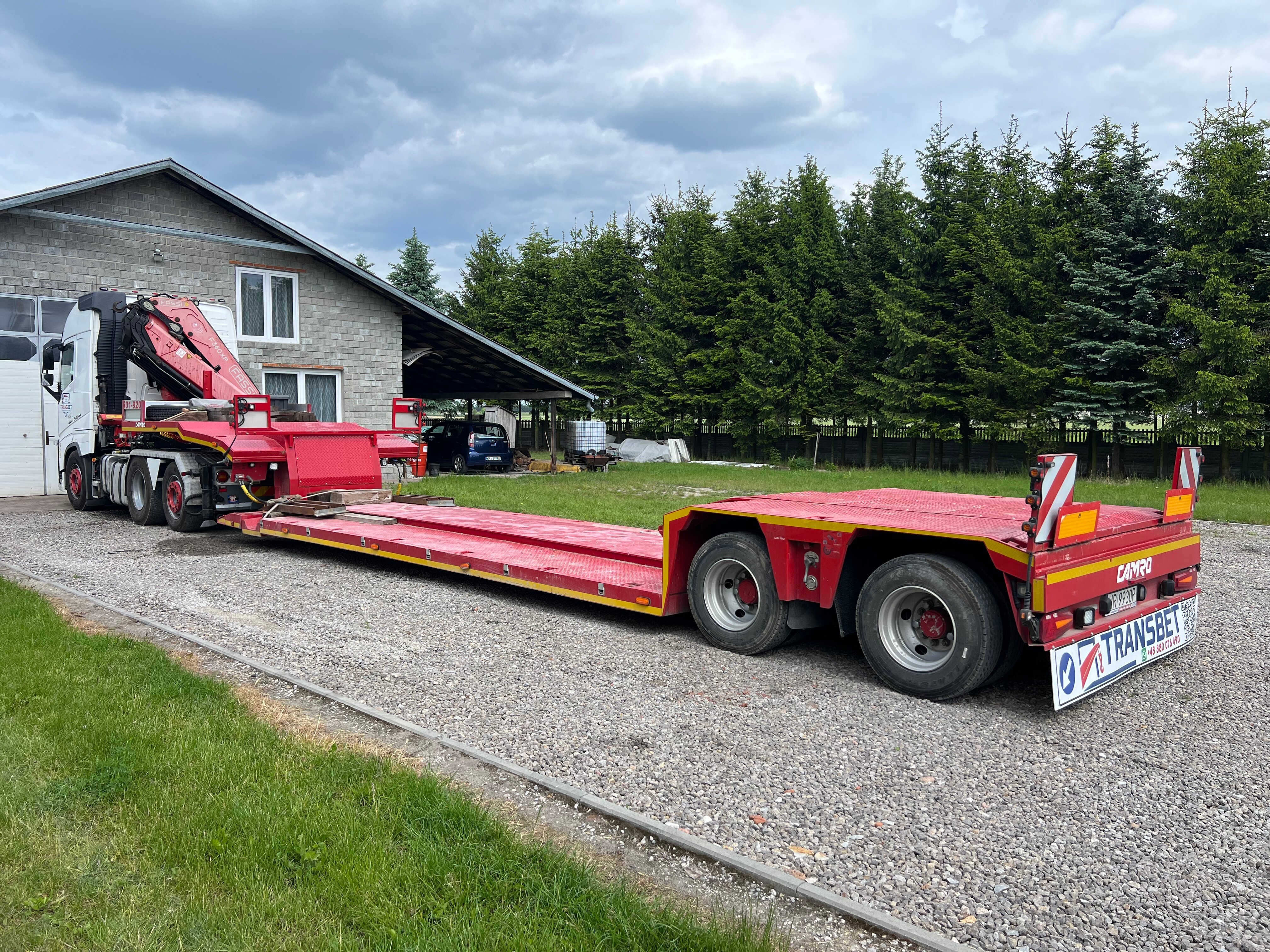 Oferujemy transport niskopodwoziowy maszyn, pojazdów i konstrukcji ponadgabarytowych z pełną obsługą załadunku i rozładunku przy pomocy własnego dźwigu HDS.